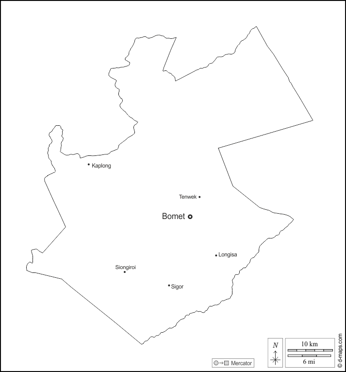 d-maps > Afrika > Kenia > Bomet County > Umrisse, Wichtige Städte, Namen, weiß