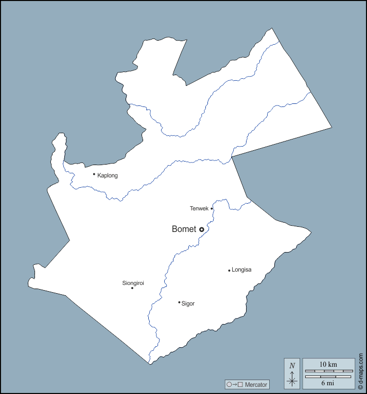d-maps > Afrika > Kenia > Bomet County > Umrisse, Hydrografie, Wichtige Städte, Namen