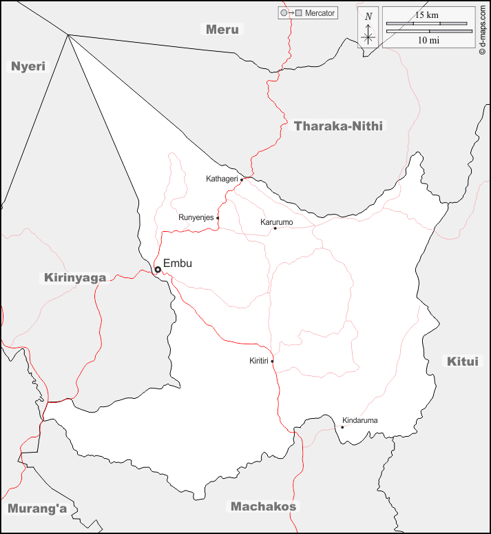 d-maps > Afrika > Kenia > Embu County > Grenzen, Wichtige Städte, Straßen, Namen