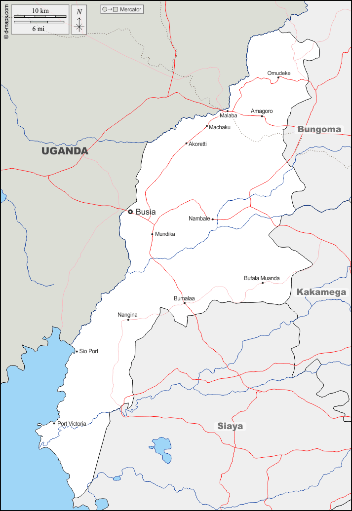 d-maps > Afrika > Kenia > Busia County > Grenzen, Hydrografie, Wichtige Städte, Straßen, Namen