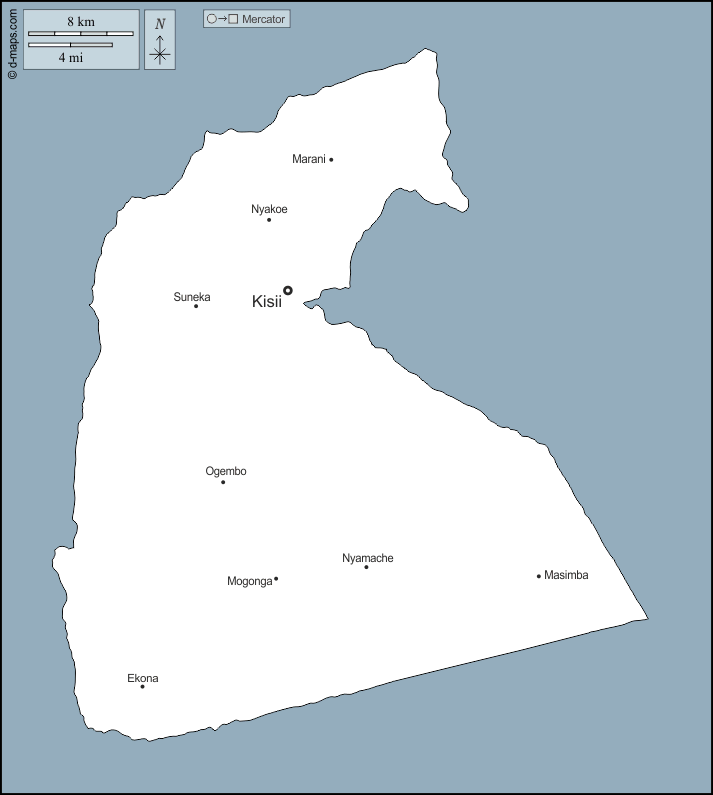 d-maps > Afrika > Kenia > Kisii County > Umrisse, Wichtige Städte, Namen