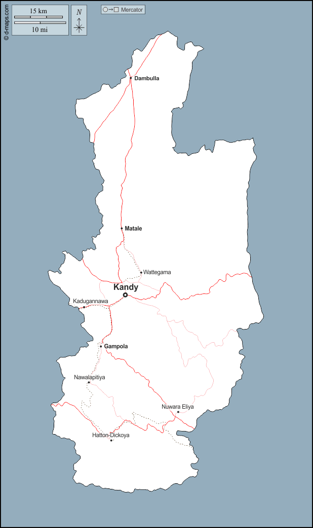 d-maps > Asien > Sri Lanka > Zentralprovinz > Umrisse, Wichtige Städte, Straßen, Namen