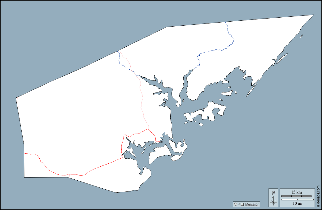 d-maps > Afrika > Kenia > Lamu County > Umrisse, Hydrografie, Straßen