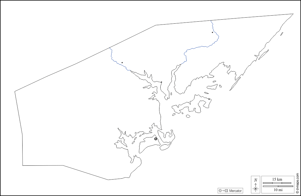 d-maps > Afrika > Kenia > Lamu County > Umrisse, Hydrografie, Wichtige Städte, weiß
