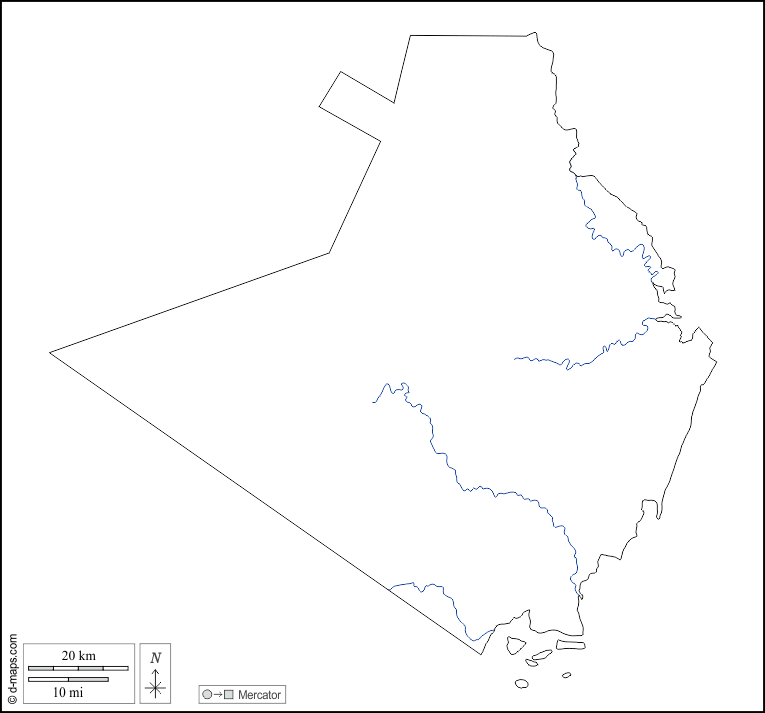 d-maps > Afrika > Kenia > Kwale County > Umrisse, Hydrografie, weiß