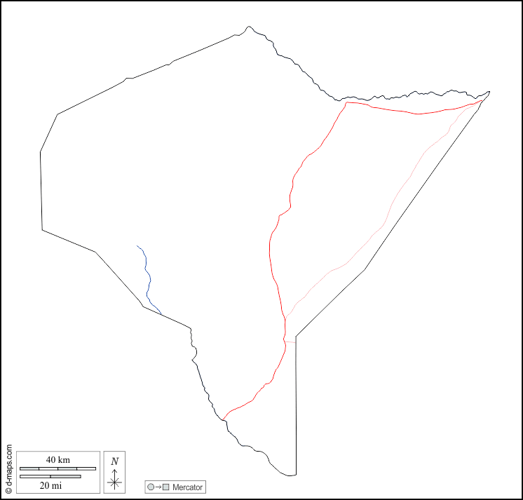 d-maps > Afrika > Kenia > Mandera County > Umrisse, Hydrografie, Straßen, weiß