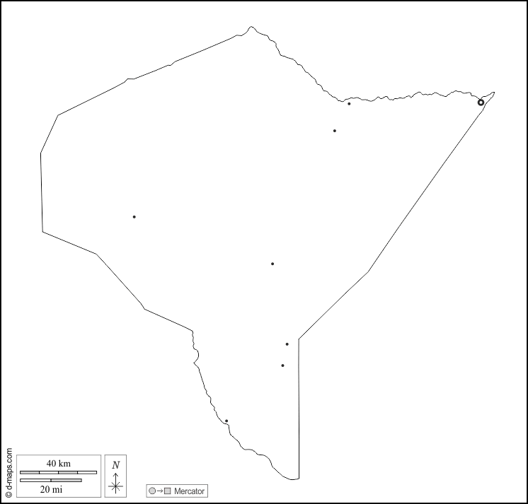 d-maps > Afrika > Kenia > Mandera County > Umrisse, Wichtige Städte, weiß