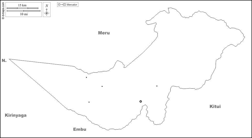 d-maps > Afrika > Kenia > Tharaka-Nithi County > Umrisse, Wichtige Städte, weiß