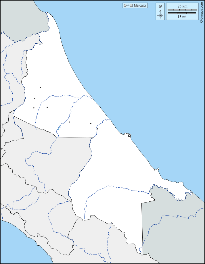 d-maps > Amerika > Costa Rica > Provinz Limón > Grenzen, Hydrografie, Wichtige Städte