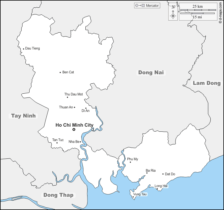 d-maps > Asien > Vietnam > Ho-Chi-Minh-Stadt > Grenzen, Wichtige Städte, Namen