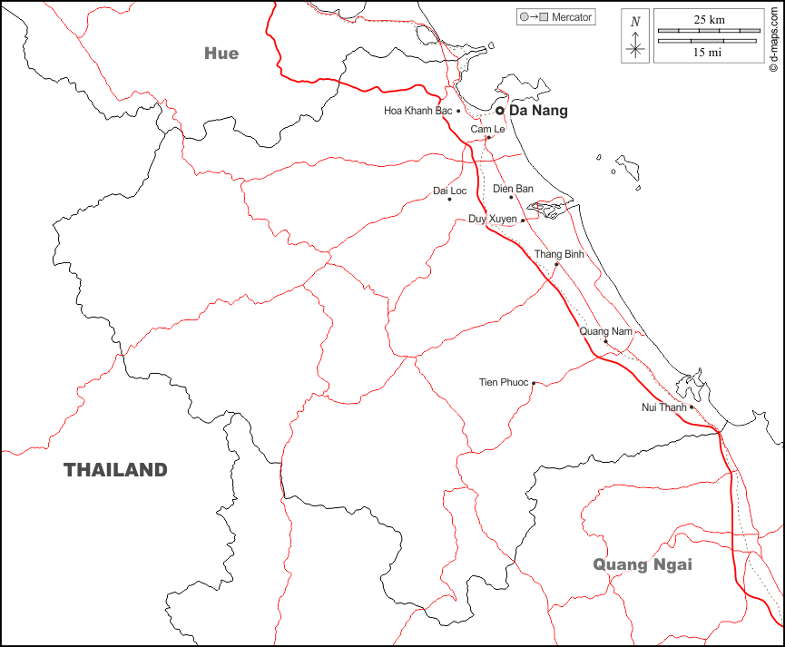 d-maps > Asien > Vietnam > Da Nang > Grenzen, Wichtige Städte, Straßen, Namen, weiß