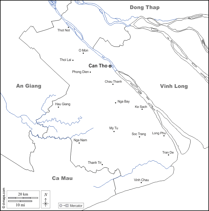 d-maps > Asien > Vietnam > Can Tho > Grenzen, Hydrografie, Wichtige Städte, Namen, weiß