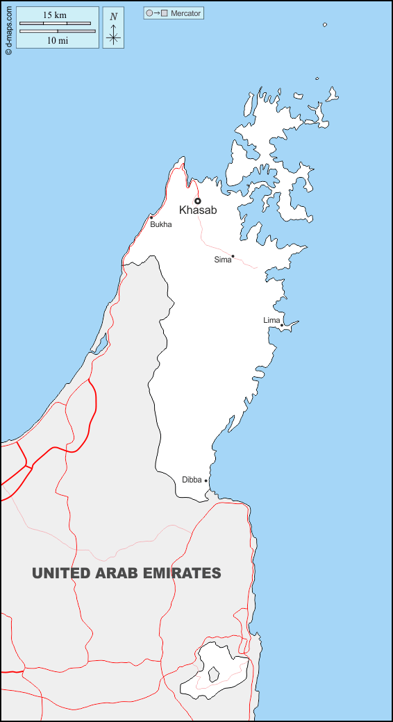 d-maps > Oman > Gouvernement Musandam > Grenzen, Wichtige Städte, Straßen, Namen