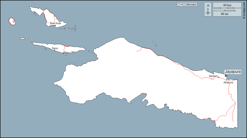 d-maps > Asien > Indonesien > Papua > Umrisse, Wichtige Städte, Straßen, Namen