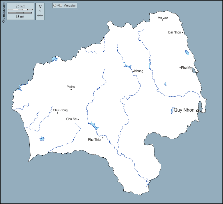 d-maps > Asien > Vietnam > Provinz Gia Lai > Umrisse, Hydrografie, Wichtige Städte, Namen