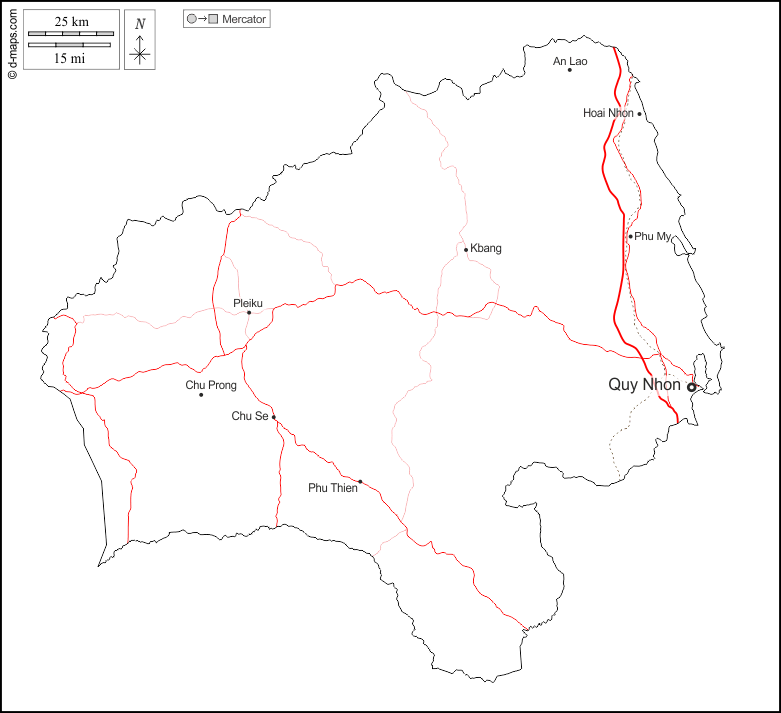 d-maps > Asien > Vietnam > Provinz Gia Lai > Umrisse, Wichtige Städte, Straßen, Namen, weiß