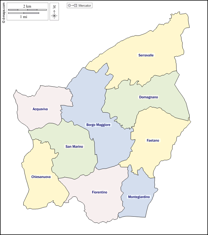 d-maps > Europa > San Marino > Umrisse, Namen, Farbe, weiß