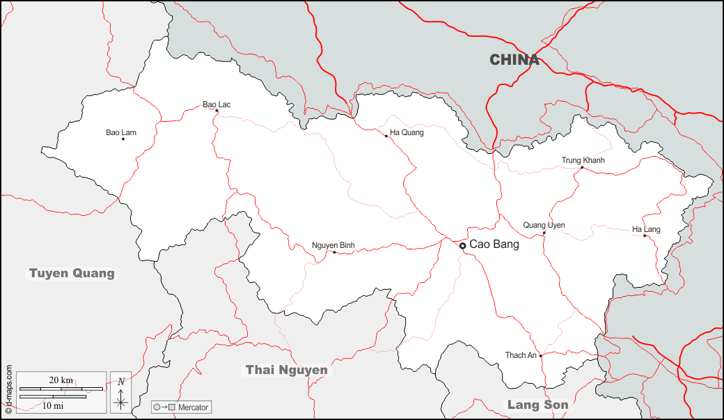 d-maps > Asia > Vietnam > Cao Bang Province > boundaries, main cities, roads, names