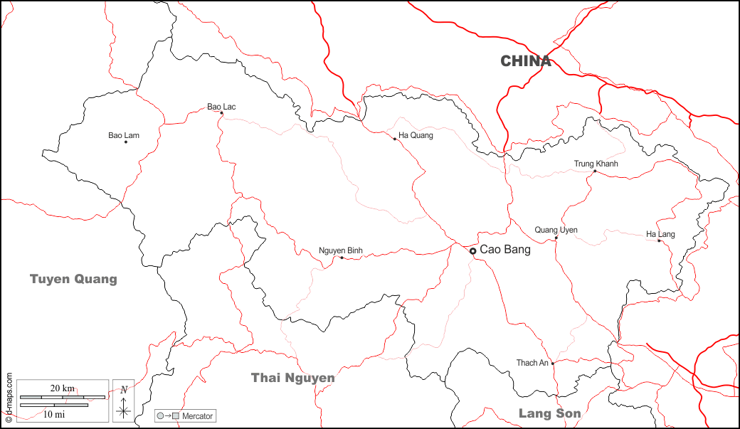 d-maps > Asia > Vietnam > Cao Bang Province > boundaries, main cities, roads, names, white