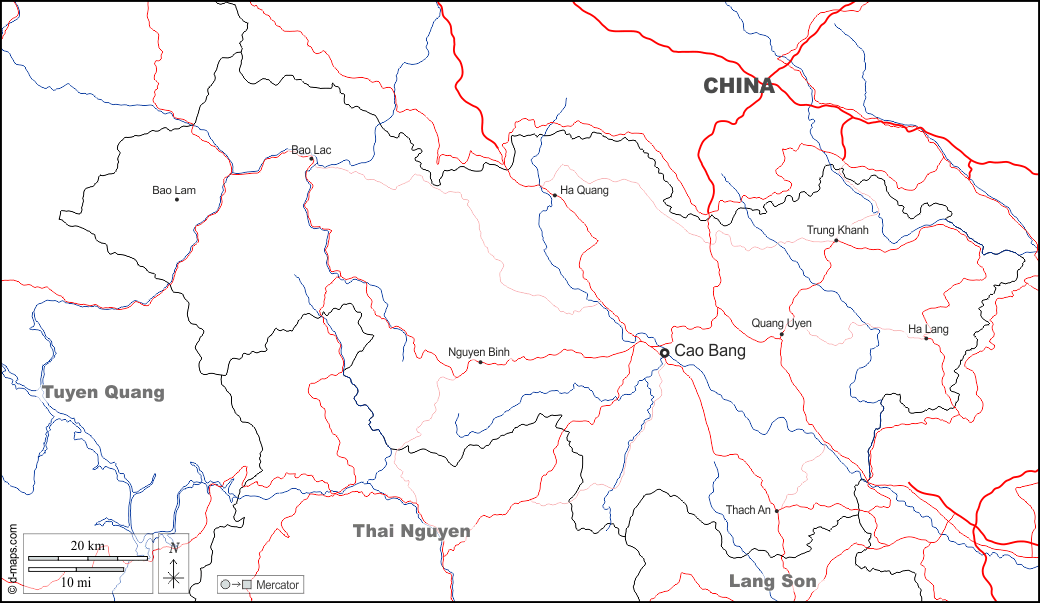 d-maps > Asia > Vietnam > Cao Bang Province > boundaries, hydrography, main cities, roads, names, white
