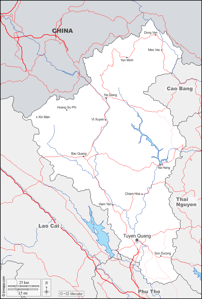 d-maps > Asia > Vietnam > Tuyên Quang Province > boundaries, hydrography, main cities, roads, names