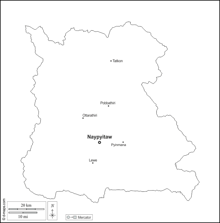 d-maps > Asia > Burma Myanmar > Naypyidaw Union Territory > outline, main cities, names, white