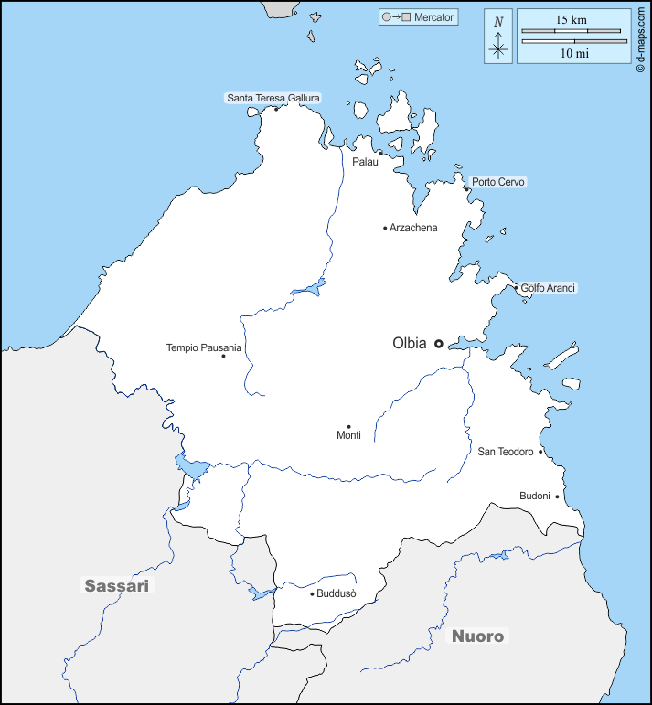 d-maps > Europe > Italy > Province of Gallura North-East Sardinia > boundaries, hydrography, main cities, names