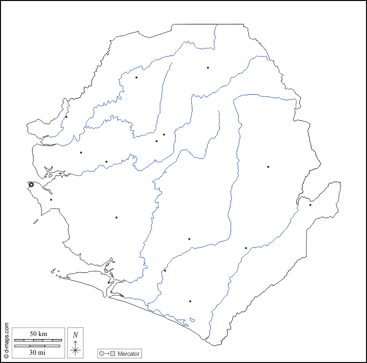 d-maps > África > Sierra Leone > contornos, hidrografía, principales ciudades, blanco