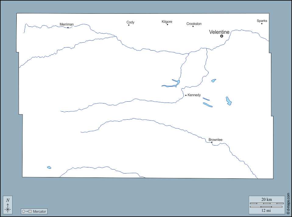 d-maps > Estados Unidos de América (USA) > Nebraska > Condado de Cherry > contornos, hidrografía, principales ciudades, nombres
