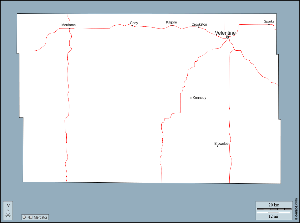 d-maps > Estados Unidos de América (USA) > Nebraska > Condado de Cherry > contornos, principales ciudades, carreteras, nombres