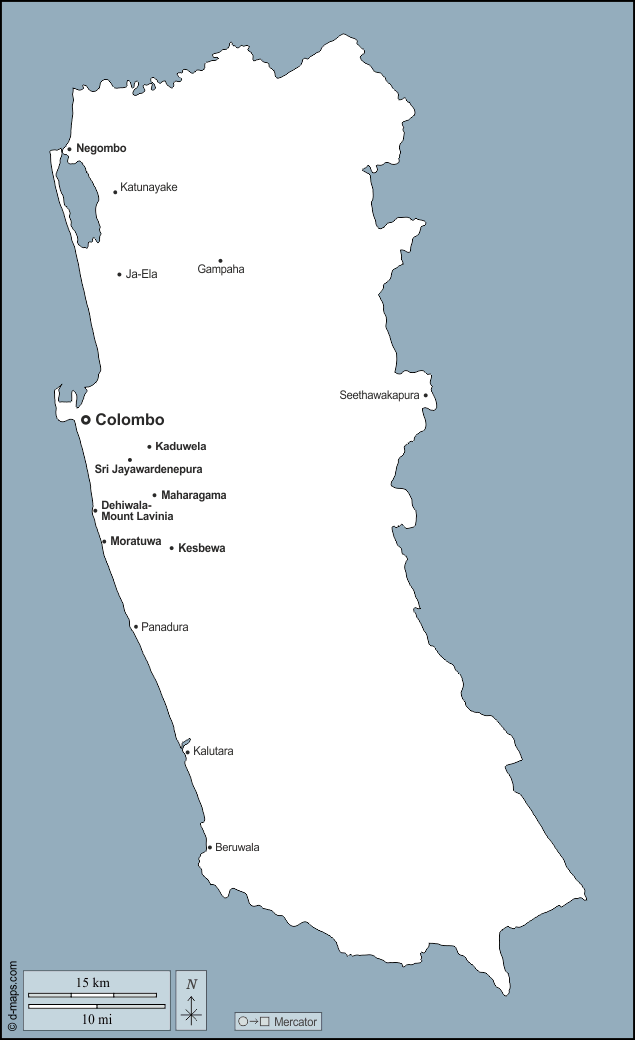 d-maps > Asia > Sri Lanka > Provincia Occidental > contornos, principales ciudades, nombres