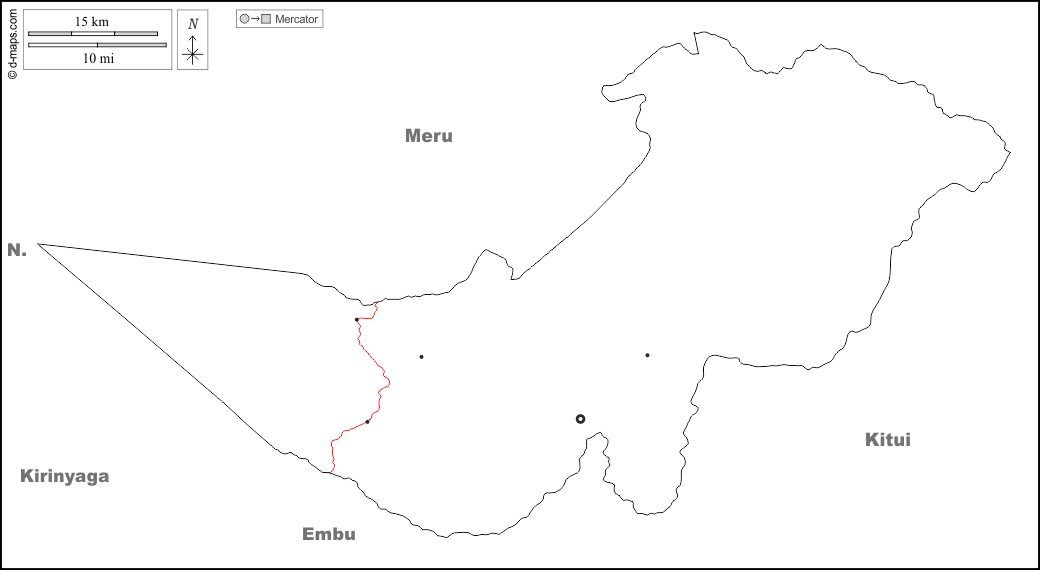d-maps > África > Kenia > Condado de Tharaka-Nithi > contornos, principales ciudades, carreteras, blanco