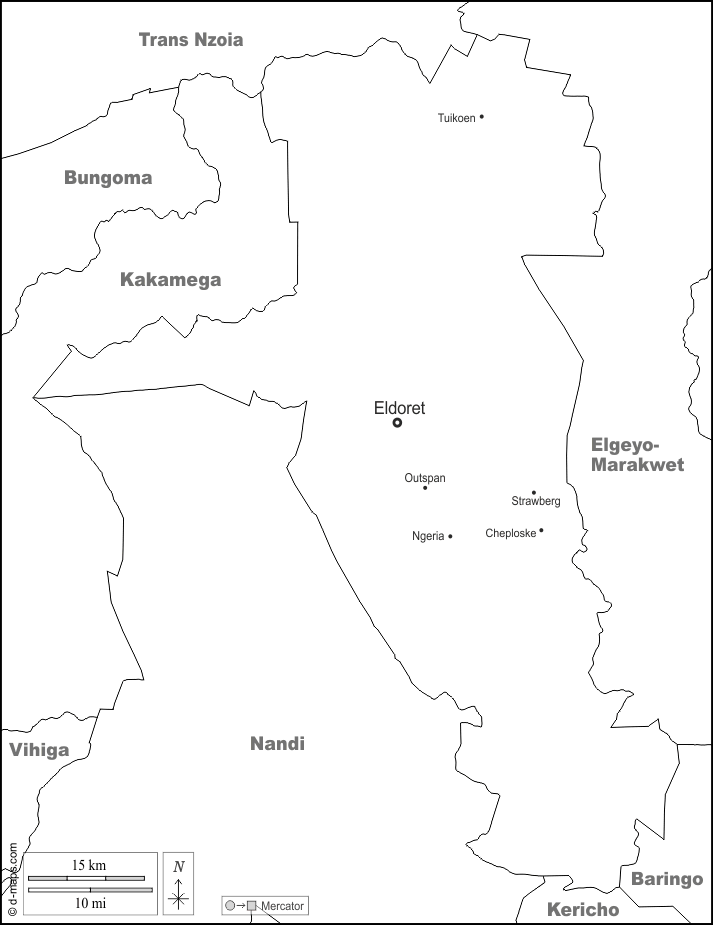 d-maps > África > Kenia > Condado de Uasin Gishu > fronteras, principales ciudades, nombres, blanco