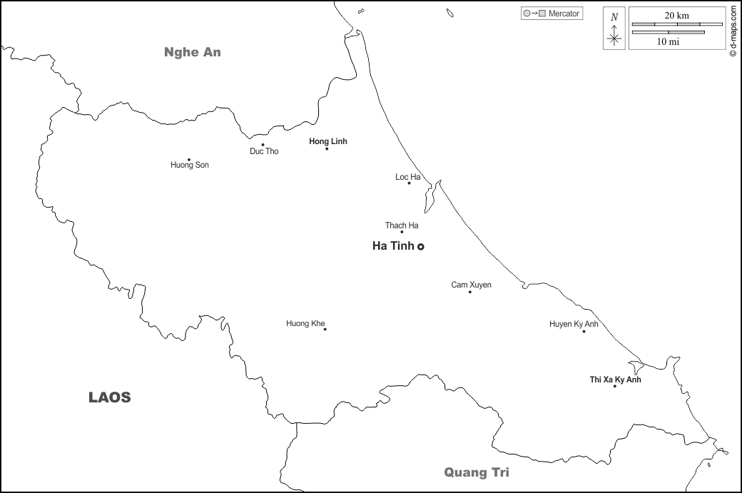d-maps > Asia > Vietnam > Provincia de Ha Tinh > fronteras, principales ciudades, nombres, blanco