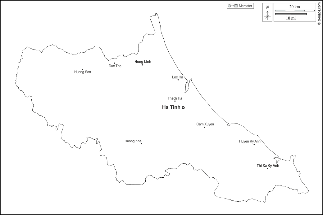 d-maps > Asia > Vietnam > Provincia de Ha Tinh > contornos, principales ciudades, nombres, blanco