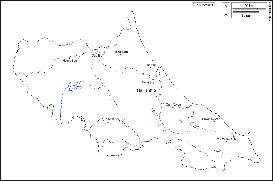 d-maps > Asia > Vietnam > Provincia de Ha Tinh > contornos, hidrografía, principales ciudades, nombres, blanco