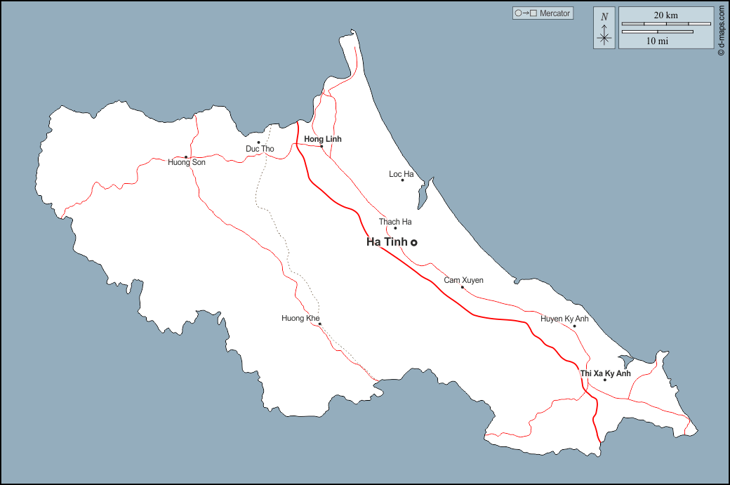 d-maps > Asia > Vietnam > Provincia de Ha Tinh > contornos, principales ciudades, carreteras, nombres