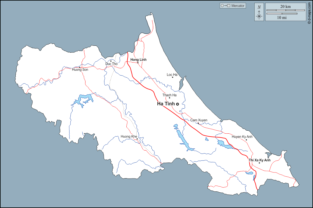 d-maps > Asia > Vietnam > Provincia de Ha Tinh > contornos, hidrografía, principales ciudades, carreteras, nombres
