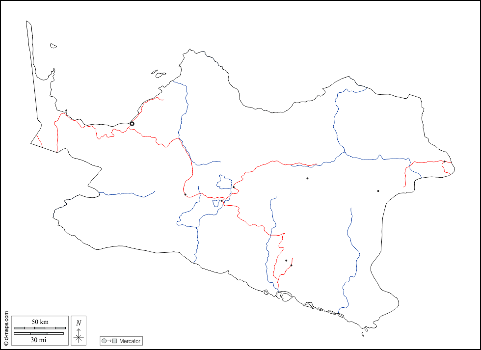 d-maps > Asia > Indonesia > Papúa Central > contornos, hidrografía, principales ciudades, carreteras, blanco