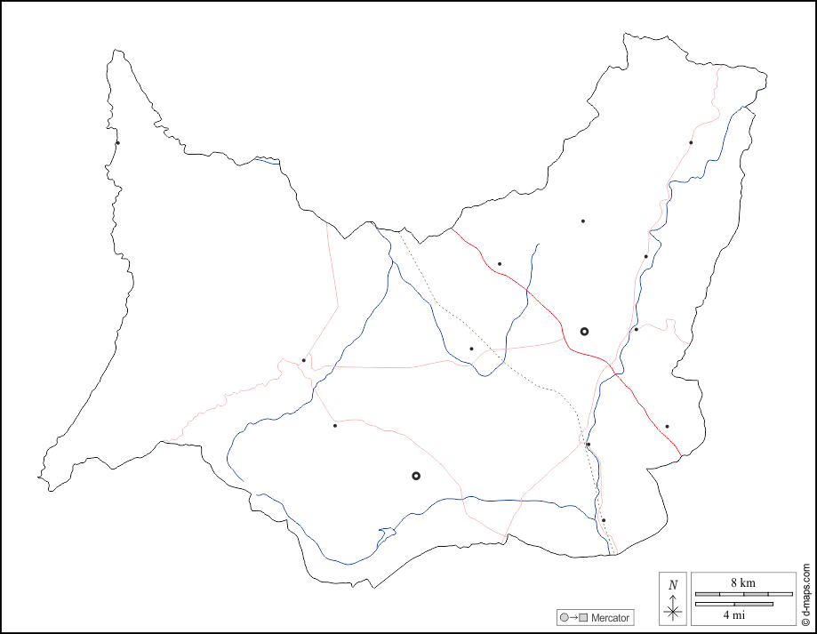 d-maps > Europa > Italia > Provincia de Medio Campidano > contornos, hidrografía, principales ciudades, carreteras, blanco
