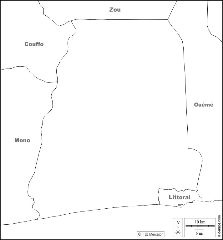 d-maps > Afrique > Bénin > Département de l'Atlantique > frontières, noms, blanc