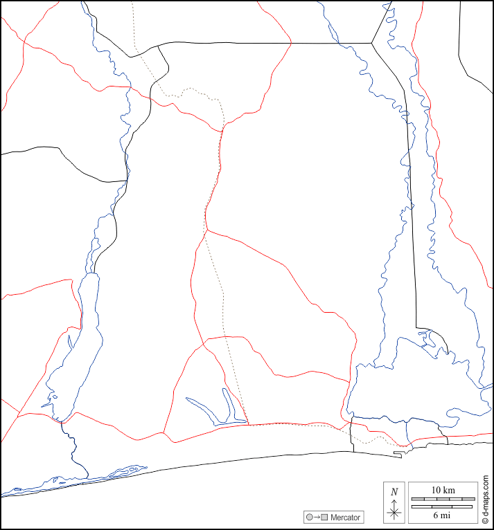 d-maps > Afrique > Bénin > Département de l'Atlantique > frontières, hydrographie, routes, blanc