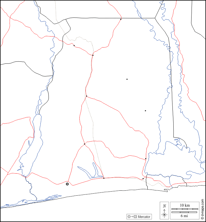 d-maps > Afrique > Bénin > Département de l'Atlantique > frontières, hydrographie, principales villes, routes, blanc