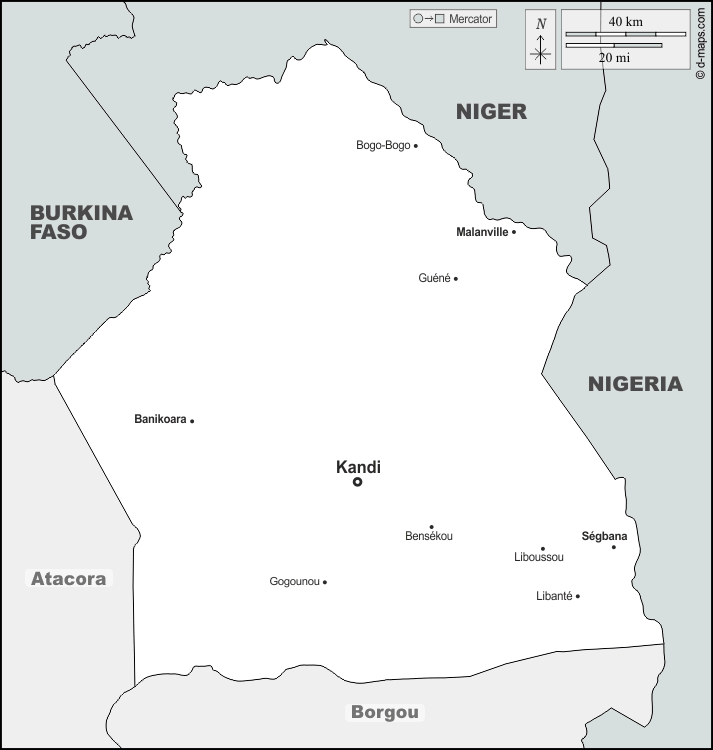d-maps > Afrique > Bénin > Département de l'Alibori > frontières, principales villes, noms