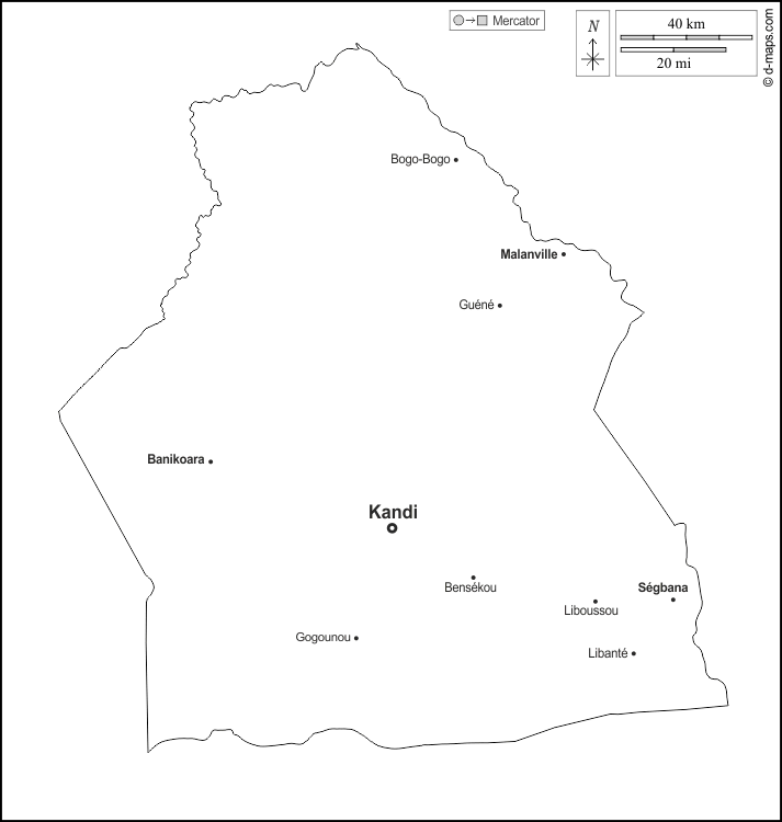d-maps > Afrique > Bénin > Département de l'Alibori > contours, principales villes, noms, blanc