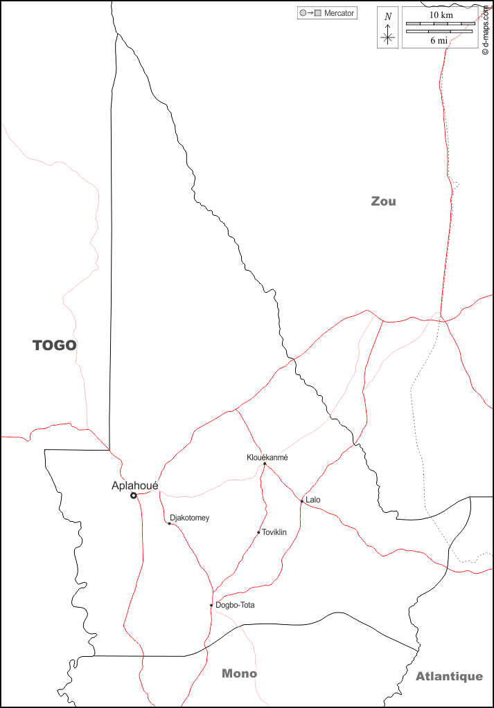 d-maps > Afrique > Bénin > Département de Couffo > frontières, principales villes, routes, noms, blanc