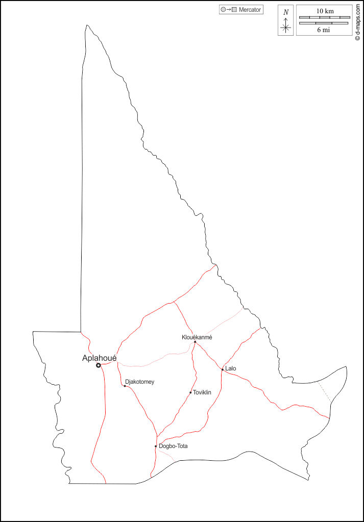 d-maps > Afrique > Bénin > Département de Couffo > contours, principales villes, routes, noms, blanc