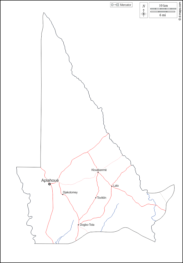 d-maps > Afrique > Bénin > Département de Couffo > contours, hydrographie, principales villes, routes, noms, blanc