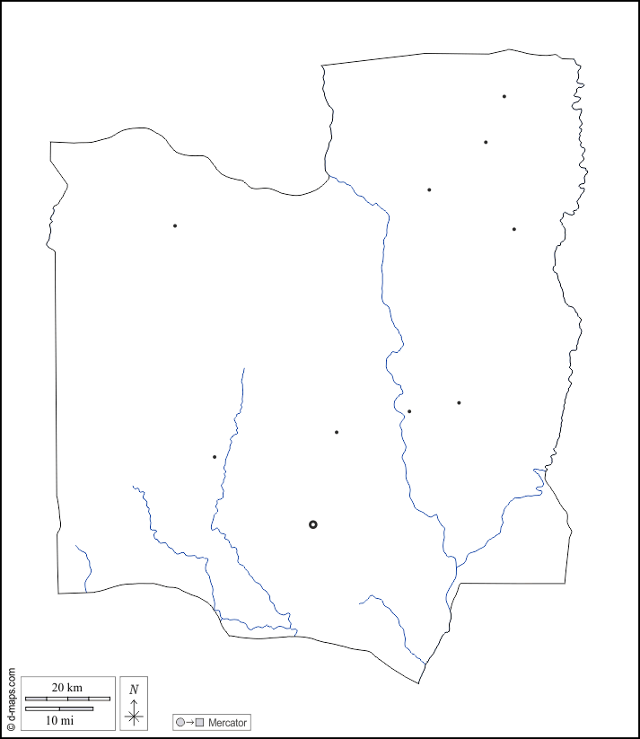 d-maps > Afrique > Bénin > Département des Collines > contours, hydrographie, principales villes, blanc