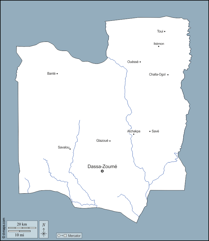 d-maps > Afrique > Bénin > Département des Collines > contours, hydrographie, principales villes, noms